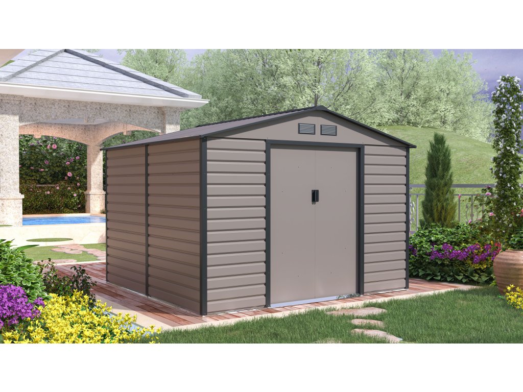Zahradní domky na nářadí v moderním designu se hodí do každé zahrady. Vstupní dveře jsou dostatečně široké, proto do domečku pohodlně uložíte své nářadí, zahradní kolečko i venkovní nábytek.