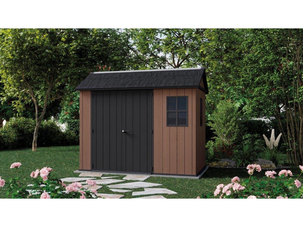 Zahradní domek Keter Newton Plus wide 9x7,5 hnědý, s podlahou Nevíte kde uplatnit Benefity obecně, zeptej se info@megabike-cyklo.cz