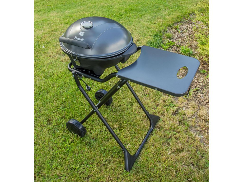 Elektrický gril G21 Hawaii s rozkládacím stolem a výkonem 2,4 kW má termostat a nastavíte na něm teplotu v rozpětí 100 °C–220 °C. Přenosný gril s velkou grilovací plochou a víkem má také chytře řešený stůl s odkládácím místem a pojezdem. Po grilování můžete podstavec pod gril snadno složit a celý gril tak pohodlně a bez námahy přesunete.