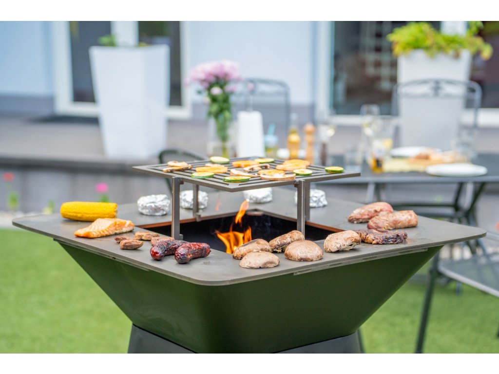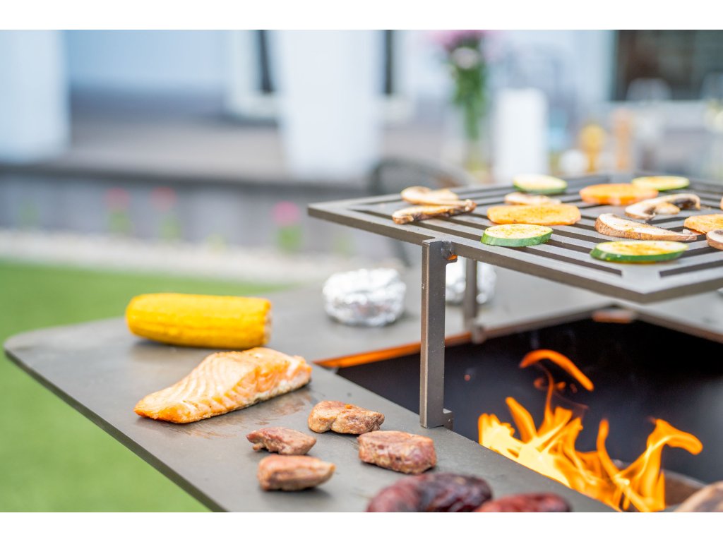 - Víc tepelných zón – grilovat můžete na vyvýšeném roštu nebo nad topeništěm na celé planše v různých intenzitách žáru