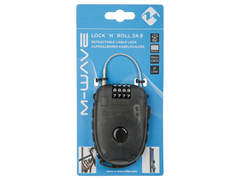 Navíjecí lankový kódový zámek M-Wave COMBO X POCKET.- délka navíjecího lanka 900 mm