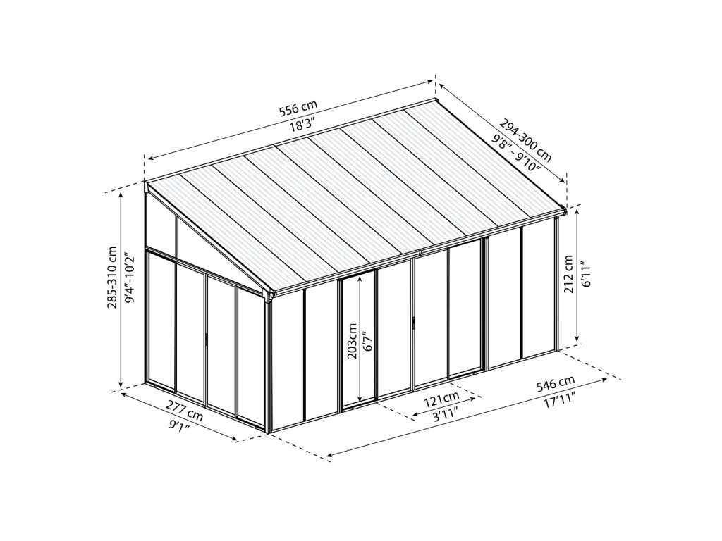Torino 3 x 5,46 antracit - zimní zahrada Vychutnejte si dotek přírody v interiéru Torino™ přináší novou kvalitu do vašeho domova a životního stylu Konstrukce odolná proti povětrnostním vlivům - chrání při drsných povětrnostních podmínkách Celkem tři široké dvojité posuvné dveře umožňují lepší proudění vzduchu a pohodlnější průchod Uzamykatelné dveře - bezpečné zamykání zevnitř hlavním klíčem Odolný, zesílený hliníkový rám Deska pro montáž na zeď je nastavitelná tak, aby splňovala požadovanou výšku (285 - 310 cm) Střešní panely velmi účinně chrání proti UV záření Krystalově čisté akrylátové stěnové panely s vysokou odolností proti nárazu, přirozeně odolné vůči škodlivému UV záření Vestavěný žlab pro efektivní odvodnění a sběr vody Snadná montáž, kterou zvládne každý. Předem sestavené dveře bez potřeby použití žebříku Možná instalace speciálního osvětlovacího systému (prodává se samostatně) Přizpůsobte svůj domov klidnému venkovnímu prostředí a vytvořte si nový prostor, kde můžte relaxovat po celý rok Křišťálově čistý, průhledný akrylový stěnový systém, odolný a snadno udržovatelný. Dokonale splyne s jakýmkoli domácím designem a venkovním prostředím Akrylátové desky s vysokou odolností proti nárazu. Dokonale propouštějí světlo po celou dobu své životnosti. "Click N’ Lock" systém střešních spojů pro bezpečnou a jednoduchou montáž, zabraňuje pronikání vody mezi konstrukcí a prosklenými plochami. Důležité informace Nezapomeňte před zahájením montáže zkontrolovat, zda je povrch země dokonale plochý a vyrovnaný pod úhlem 90°. Další dva rozměry lze přivézt na speciální objednávku. Bližší informace a technické parametry u našich prodejců. Torino 3 x 4,25 Torino 4 x 4,25Při platbě penězi je možné dostat zajímavou nabídku neboli akční cenu a tu Vám rádi uděláme když napíšete na info@megabike-cyklo.cz