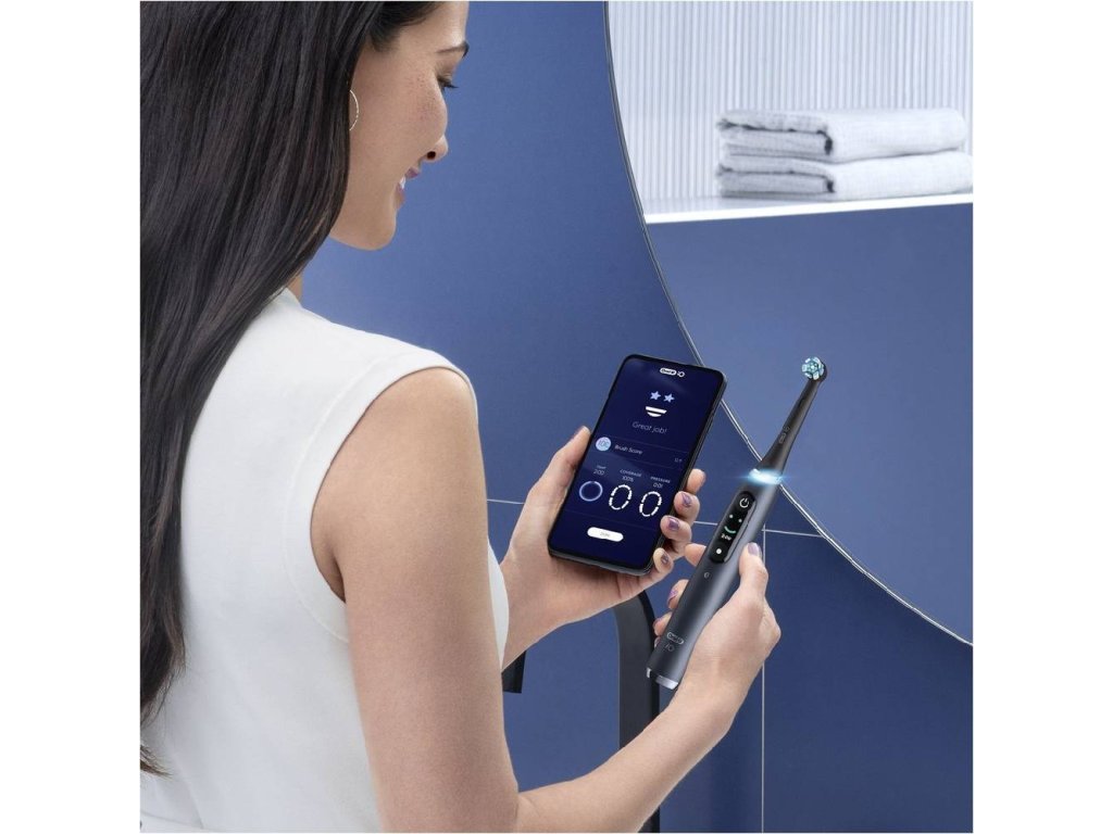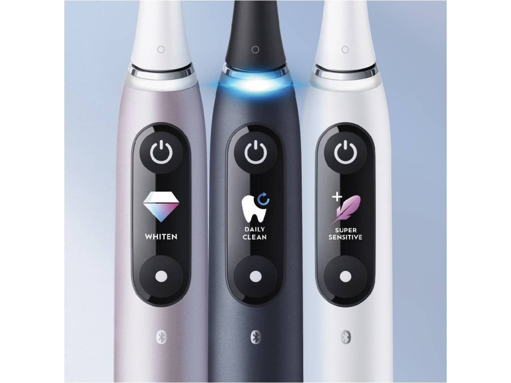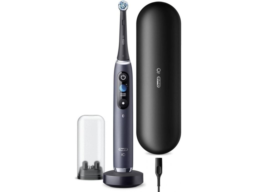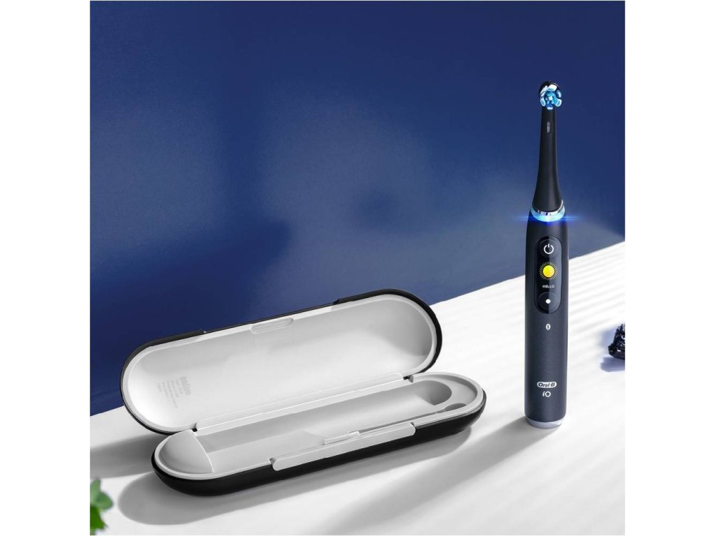 Elektický zubní kartáček iO s revoluční magnetickou iO technologií pro pocit profesionálního a jemného čištění zubů. Spojuje unikátní kulatou kartáčkovou hlavu Oral-B a jemné mikrovibrace, takže budete mít svěží pocit čistoty v ústech a vaše dásně budou 100% zdravější už za jeden týden. Interaktivní barevný display ukazuje důležité informace: včetně režimů čištění a upomínky na výměnu kartáčkové hlavy, pozdravu, když ho zapnete, a úsměvu za dobře odvedenou práci. Umělá inteligence rozpozná váš styl čištění a navede vás tak, abyste si vyčistili všechny zuby a žádné místo nevynechali. Funkce 3D sledování jak čistíte veškeré plochy zubů. 7 čisticích režimů: pro každodenní čištění, jemný, péče o dásně, intenzivní čištění, bělicí, super jemný, čištění jazyka. Vylepšený chytrý senzor tlaku signalizuje pomocí červené, bílé nebo zelené barvy kontrolky, pokud při čištění tlačíte příliš, málo nebo správně. Magnetická nabíječka zajišťuje stabilitu a umožňuje rychlé nabití za 3 hodiny. Obsah balení: 1 rukojeť iO9 barva černá; kartáčková hlavice Ultimate Clean, 1 prémiové cestovní pouzdro-nabíjecí, 1 magnetická nabíječka, 1 praktický úložný prostor na kartáčkové hlavySmart zubní kartáček Oral-B iO9 Series Onyx obdržel 7 režimů čištění, funkci 3D mapování zubů, časovač, nastavitelnou rychlost, senzor tlaku, technologii iO a OLED displej.