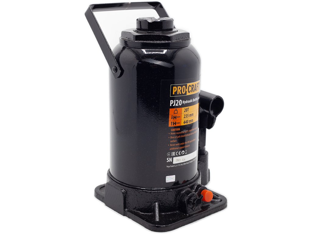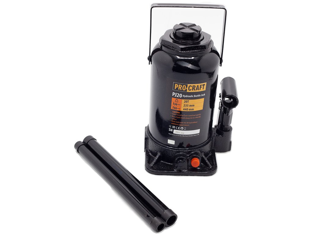 Hydraulický zvedák Procraft PJ20 je určen k zdvihání automobilů, ve stavebnictví a průmyslu. Konstrukce je z kvalitní litiny, vybavena bezpečnostním ventilem. Zvedák má zdvihací kapacitu 20 tun a zdvihový rozsah od 235 mm do 440 mm a vybaven šroubovací patkou. Pohodlné zdvihání a plynulé spouštění břemen usnadňují práci. Součástí dodávky je tyč. Balení karton.