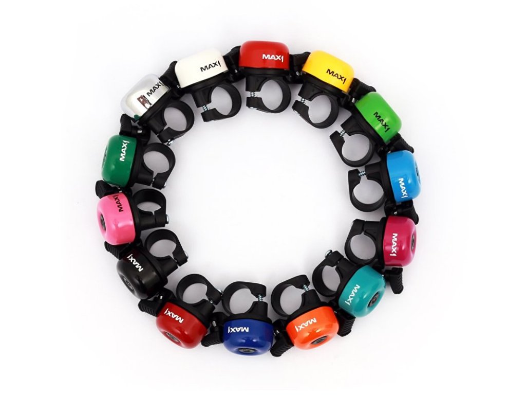 Sada zvonků na řidítka MAX1 Mini. !!Skladba barev se může měnit!!- otočná palička v úhlu 360 st.